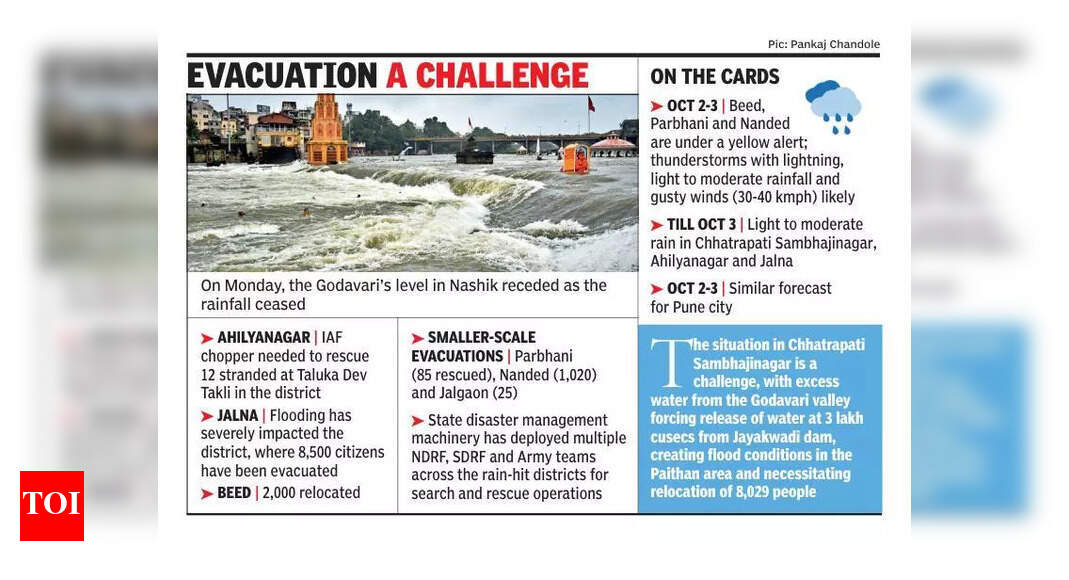पुणे: या हंगामात या हंगामात कोणतीही चिन्हे नसल्याचे पाऊस पडल्याने आयएमडीने सोमवारी सांगितले की, बंगालच्या उपसागरावर आणखी एक कमी दबाव भाग होण्याची शक्यता आहे आणि पुढील काही दिवस महाराष्ट्रात पिवळ्या रंगाचा इशारा जारी केला.२ days सप्टेंबर रोजी कॅम्बेच्या आखाती आणि जवळच्या प्रदेशांवर काही दिवसांपूर्वी विकसित होणारी आणि अलीकडील शॉवर चालविणारी एक चांगली चिन्हांकित निम्न-दाब प्रणाली. भारत हवामान विभाग (आयएमडी) यांनी सांगितले की, सौराषा ओलांडून पश्चिमेकडील-उत्तर-पश्चिमेकडे जाण्याची शक्यता आहे.स्वतंत्रपणे, 30 सप्टेंबर रोजी उत्तर अंदमान समुद्रावर ताजे अप्पर एअर चक्रीवादळ अभिसरण होण्याची अपेक्षा आहे, असे आयएमडीने सांगितले. त्याच्या प्रभावाखाली, 1 ऑक्टोबरच्या सुमारास बंगालच्या उत्तर आणि जवळच्या मध्यवर्ती उपसागरात एक नवीन निम्न-दाब क्षेत्र विकसित होण्याची शक्यता आहे, असे एजन्सीने सांगितले.पुढील काही दिवसांत महाराष्ट्रात या विभागाने महाराष्ट्रात पिवळ्या रंगाचा इशारा जारी केला आणि कोकण, गोवा आणि मध्य महाराष्ट्र यांच्यावर पुढील सहा दिवसांत मोठ्या प्रमाणात पाऊस पडल्याचा अंदाज लावला. पुढील सहा दिवसांत, 30 सप्टेंबरला वगळता आयएमडीच्या अधिका official ्याने सांगितले की, आगामी पाऊस पडला होता. आयएमडी वैज्ञानिक एसडी सानाप म्हणाले: “2 ऑक्टोबरपासून महाराष्ट्रात पावसाची तीव्रता वाढण्याची शक्यता आहे परंतु अलीकडील जादू इतकी तीव्र असू शकत नाही – काही प्रमाणात दिलासा मिळाला आहे की अधिक पाऊस अपेक्षित असताना, हे राज्यभरात हजारो विस्थापित झालेल्या सध्याच्या विध्वंसक पातळीशी जुळत नाही.”राज्य आपत्कालीन ऑपरेशन्स सेंटर (एसईओसी) यांनी छत्रपती संभाजिनगर, अहलियानगर, जालना, बीड आणि परभानी जिल्ह्यांमधील अधिका with ्यांशी समन्वय साधला आहे आणि आवश्यक असल्यास हवाई समर्थन सुनिश्चित केले आहे. जयकवाडी ते नांडेड पर्यंत गोदावरी नदीकाठी असलेल्या सर्व जिल्ह्यांसाठी अ‍ॅडव्हान्स पूर इशारा देखील देण्यात आला आहे, ज्यांना अलिकडच्या काळात आधीच पूर दिसला आहे.महाराष्ट्राच्या काही भागात मुसळधार पावसामुळे अलीकडेच व्यापक पूर आणि मोठ्या प्रमाणात निर्वासन कारवाई झाली आणि एकाधिक जिल्ह्यांचा तीव्र परिणाम झाला. सोलापूर जिल्ह्यात, सीना नदी वडक्बल येथे धोक्याच्या पातळीपेक्षा वर वाहत होती, तर भीमाने टाकाली येथे चेतावणी पातळी ओलांडली आहे, ज्यामुळे 13,724 लोकांचे स्थानांतरण आणि दोन एनडीआरएफ संघांची तैनाती करण्यास प्रवृत्त केले.छत्रपती संभाजिनगरमधील परिस्थिती देखील आव्हानात्मक होती, गोदावरी खो valley ्यातून जादा पाणी, रविवारी रात्री अकराच्या सुमारास जयकवाडी धरणातून lakh लाख क्युसेक येथे पाणी सोडण