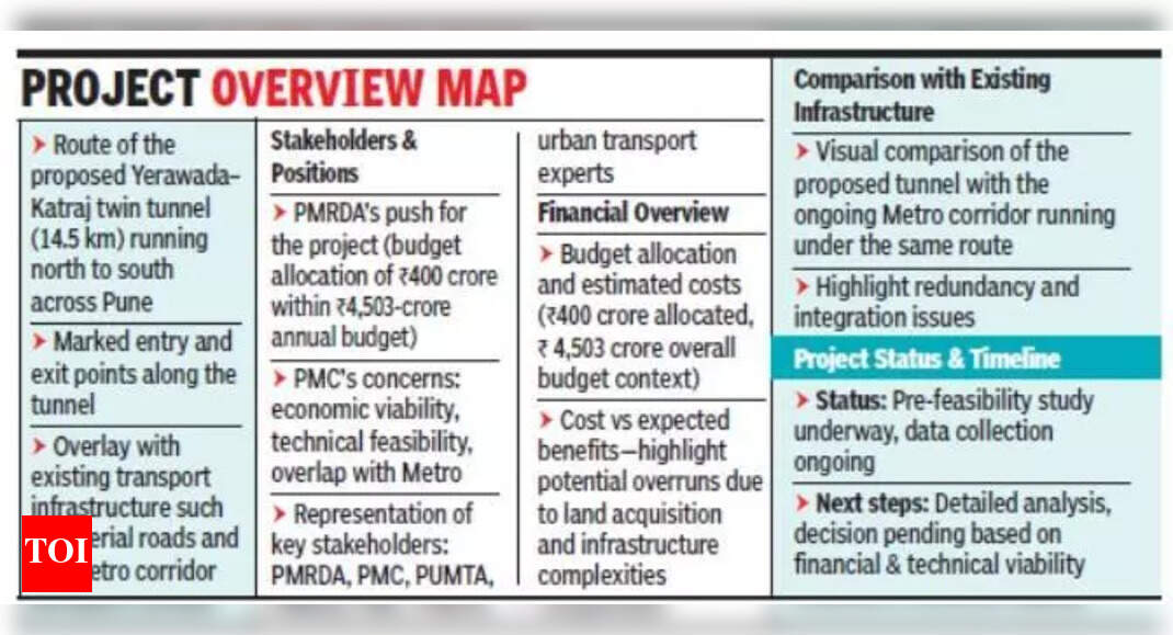 पुणे-पीएमआरडीएने प्रस्तावित १.5..5 कि.मी. येरावाडा-कटराज ट्विन बोगद्याच्या प्रकल्पाच्या पूर्व-कार्यक्षमतेच्या अभ्यासासह पुढे जाण्याचा निर्णय घेतला आहे, अगदी पीएमसीच्या वरिष्ठ अधिका्यांनी आपल्या आर्थिक आणि तांत्रिक व्यवहार्यतेबद्दल प्रश्न उपस्थित केले. एक सल्लामसलत आधीच नियुक्त केली गेली आहे आणि डेटा संग्रह सुरू आहे. “व्यवहार्यतेवर भाष्य करणे फार लवकर आहे. नुकत्याच झालेल्या पुणे युनिफाइड मेट्रोपॉलिटन ट्रान्सपोर्ट अथॉरिटी (पीयूएमटीए) बैठकीत सदस्यांनी अधिक तपशीलवार डेटा मागितला. आमची एजन्सी सध्या हे कार्य करीत आहे,” पुणे मेट्रोपॉलिटन रीजन डेव्हलपमेंट अथॉरिटीचे अतिरिक्त आयुक्त दीपक सिंगला यांनी बुधवारी टीओआयला सांगितले. सिंगलाने स्पष्टीकरण दिले की प्रारंभिक आक्षेप असूनही, प्रकल्प अद्याप विचाराधीन आहे आणि अभ्यास केला जात आहे. ते म्हणाले, “ते स्क्रॅप करण्याचा कोणताही निर्णय नाही. आम्ही प्रस्तावाचे मूल्यांकन करण्यासाठी डेटा संकलित करीत आहोत आणि सर्व भागधारकांना मान्य असलेल्या समाधानावर पोहोचलो आहोत,” ते म्हणाले. पुणे म्युनिसिपल कॉर्पोरेशन (पीएमसी) आयुक्त नेव्हल किशोर राम यांनी पुल्टा चर्चेदरम्यान चिंता व्यक्त केली असल्याची पुष्टी केली. “मी उपलब्ध असलेल्या आकडेवारीबद्दल आरक्षण व्यक्त केले आणि अधिक तपशीलवार विश्लेषण हाती घ्यावे असे सुचविले. मी हा प्रकल्प पूर्णपणे नाकारला नाही, किंवा तो आश्रय घेतला पाहिजे असेही म्हटले नाही. परंतु पुढे जाण्यापूर्वी व्यवहार्यता, उपयुक्तता आणि आर्थिक व्यवहार्यता स्थापित करणे आवश्यक आहे,” त्यांनी टीओआयला सांगितले. उत्तरेकडील येरावाडा ते दक्षिणेकडील कटराज पर्यंत चालणार्या प्रस्तावित बोगद्याची कल्पना ही उच्च-क्षमता क्रॉस-सिटी लिंक म्हणून केली गेली आहे आणि उत्तर आणि दक्षिणी पुणे दरम्यान प्रवासाची वेळ कमी आहे. यात ट्विन बोगद्यांचा समावेश आहे, ज्यामध्ये रहदारीच्या प्रत्येक दिशेने एक केटरिंग आणि मार्गावर एकाधिक प्रवेश आणि एक्झिट पॉईंट्स आहेत. मुख्यमंत्री देवेंद्र फडनाविस यांनी पीएमआरडीएच्या ,, 50०3 कोटी रुपयांच्या वार्षिक बजेटला मान्यता दिली तेव्हा या वर्षाच्या मार्चमध्ये या प्रकल्पाला दबाव आला, ज्यात दुहेरी बोगद्यासाठी 00०० कोटी रुपयांचे वाटप समाविष्ट होते. पुणेच्या जलद शहरी विस्ताराच्या दृष्टीने अधिका officials ्यांनी दीर्घकालीन रहदारी समाधान म्हणून ते तयार केले. तथापि, त्याच्या व्यावहारिकतेबद्दल गंभीर शंका उपस्थित केल्या गेल्या. पीएमटीएच्या बैठकीत पीएमसी अधिका officials ्यांनी असा युक्तिवाद केला की आर्थिक व्यवहार्यता कमकुवत दिसते. प्रत्येक नियोजित एंट्री आणि एक्झिट रॅम्पसाठी आधीच गर्दीच्या रोड 