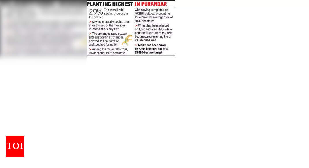 पुणे : पुणे जिल्ह्यातील रब्बी पेरणीच्या कामांनी सुरुवातीच्या काळात अनिश्चित आणि प्रदीर्घ पावसामुळे वेग घेतला आहे. अवशिष्ट ओलाव्याच्या उपलब्धतेमुळे शेतकऱ्यांना पेरणीची कामे सुरू करता आली आहेत.जिल्ह्यात एकूण रब्बी पेरणीची प्रगती 29% इतकी आहे, ज्यामुळे हंगामाची स्थिर सुरुवात होत आहे. गेल्या वर्षी याच कालावधीत रब्बी पेरणी 46% होती.या रब्बी हंगामातील सरासरी १.८७ लाख हेक्टर क्षेत्रापैकी ५३,६३९ हेक्टरवर पिकांची पेरणी झाली असल्याची माहिती जिल्हा अधीक्षक कृषी अधिकारी संजय काचोळे यांनी दिली. काचोळे म्हणाले, “मान्सून उशिराने माघार घेतल्याने आणि अवशिष्ट ओलावा वेळेवर उपलब्ध झाल्याने शेतकऱ्यांना जिल्ह्यातील बहुतांश भागात पेरणीची कामे सुरू करता आली,” असे काचोळे म्हणाले.राज्याच्या कृषी विभागाच्या अधिकाऱ्यांनी सांगितले की, येत्या दोन आठवड्यांत पेरणीचा वेग झपाट्याने वाढेल, कारण मान्सूनच्या माघारीनंतर जमिनीतील ओलावा अधिक प्रमाणात उपलब्ध होईल.प्रमुख रब्बी पिकांपैकी ज्वारीचे (ज्वारी) वर्चस्व कायम आहे, 40,219 हेक्टरवर पेरणी पूर्ण झाली आहे, जे सरासरी 88,337 हेक्टर क्षेत्राच्या 46% आहे. गव्हाची लागवड 1,640 हेक्टर (4%), तर हरभरा (चूणा) 2,080 हेक्टर क्षेत्र व्यापते, जे त्याच्या उद्दिष्ट क्षेत्राच्या 8% प्रतिनिधित्व करते.इतर पिके जसे की मका, हरभरा, आणि चारा पिके देखील स्थानिक पाण्याच्या उपलब्धतेनुसार आंशिक प्रगती पाहिली आहेत. 25,820-हेक्टर उद्दिष्टापैकी 8,909 हेक्टरवर मक्याची पेरणी झाली आहे, तर हरभरा 148 हेक्टर (43%) व्यापला आहे.पुरंदर, बारामती आणि आंबेगाव तालुक्यांमध्ये आतापर्यंत सर्वाधिक पेरणी झाली असून, एकट्या पुरंदरमध्ये 9,366 हेक्टर क्षेत्र आधीच रब्बी लागवडीखाली आहे. याउलट मावळ, मुळशी, भोर, वेल्हे, खेड, जुन्नर हे तालुके जमिनीतील ओलावा कमी असल्याने मागे पडत आहेत, असे अधिकाऱ्यांनी सांगितले.“जिल्ह्यातील काही भागातील शेतकरी हरभरा आणि गव्हाची पेरणी सुरू करण्यापूर्वी आर्द्रता सुधारण्याची वाट पाहत आहेत,” काचोळे पुढे म्हणाले.यंदाच्या असमान आणि उशिरा झालेल्या पावसामुळे रब्बीची तयारी सुरू होण्यास विलंब झाला. पारंपारिकपणे, सप्टेंबरच्या उत्तरार्धात किंवा ऑक्टोबरच्या सुरुवातीस पावसाळा संपल्यानंतर लगेचच पेरणी सुरू होते. तथापि, प्रदीर्घ पावसाळी हंगाम आणि पावसाच्या अनियमित वितरणामुळे, माती तयार करणे आणि बी-बियाणे तयार करणे अनेक आठवडे पुढे ढकलले गेले.“मान्सूनच्या उशिराने माघार घेतल्याने ओलावा टिकवून ठेवण्यास मदत झाली, परंतु शेतकऱ्यांना शेत तयार करण्यासाठी कोरड्या अंतराची गरज होती. एकदा शेताची स्थिती सुधारली की, पेरणी वेगाने सुरू झाली,” असे कृषी विभागाच्या अधिकाऱ्याने सांगितले.या हंगा